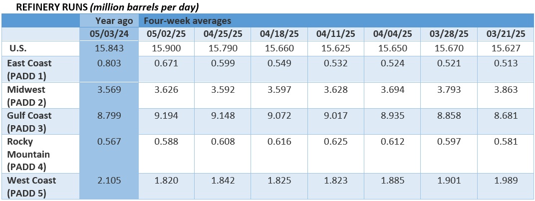 US Jet Demand Roars Back to Strength. Returning to pre-COVID levels for the first time in 5 years, the EIA reported that US jet fuel demand surpassed 2 million b/d in the week ended May 2, for the first time since December 2019 after a robust 474,000 b/d week-on-week increase.