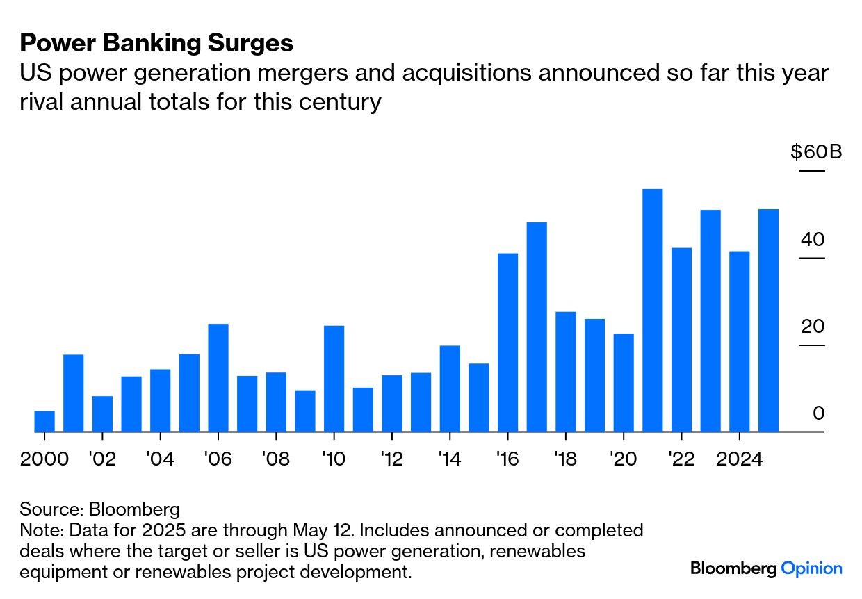 – AI’s increasing need for power generation is amplifying the market’s reaction to these deals – NRG Energy’s stock surged a whopping 26% on Monday after it announced its acquisition of LS Power.