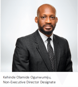 Kehinde received the prestigious Officer of the Order of the Federal Republic (“OFR”) as part of the National Honours List from the President of the Federal Republic of Nigeria in 2023. He is a Fellow of the Chartered Institute of Arbitrators (CIArb) UK, a member of the Nigerian Bar Association, the Chartered Insurance Institute of Nigeria (“CIIN”), the International Bar Association and the Abuja Chamber of Commerce, Industry, Mines & Agriculture, and is an associate of the Institute of Chartered Secretaries and Administrators of Nigeria (“ICSAN”), the professional body for corporate governance practitioners in Nigeria.