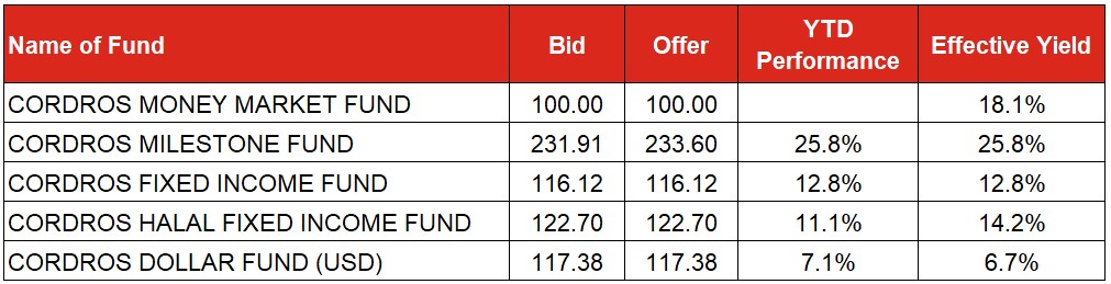 Kindly see below our Mutual Fund prices and returns as of today.