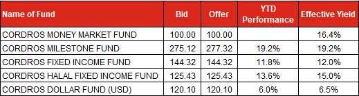 Kindly see below our Mutual Fund prices and returns as of today.